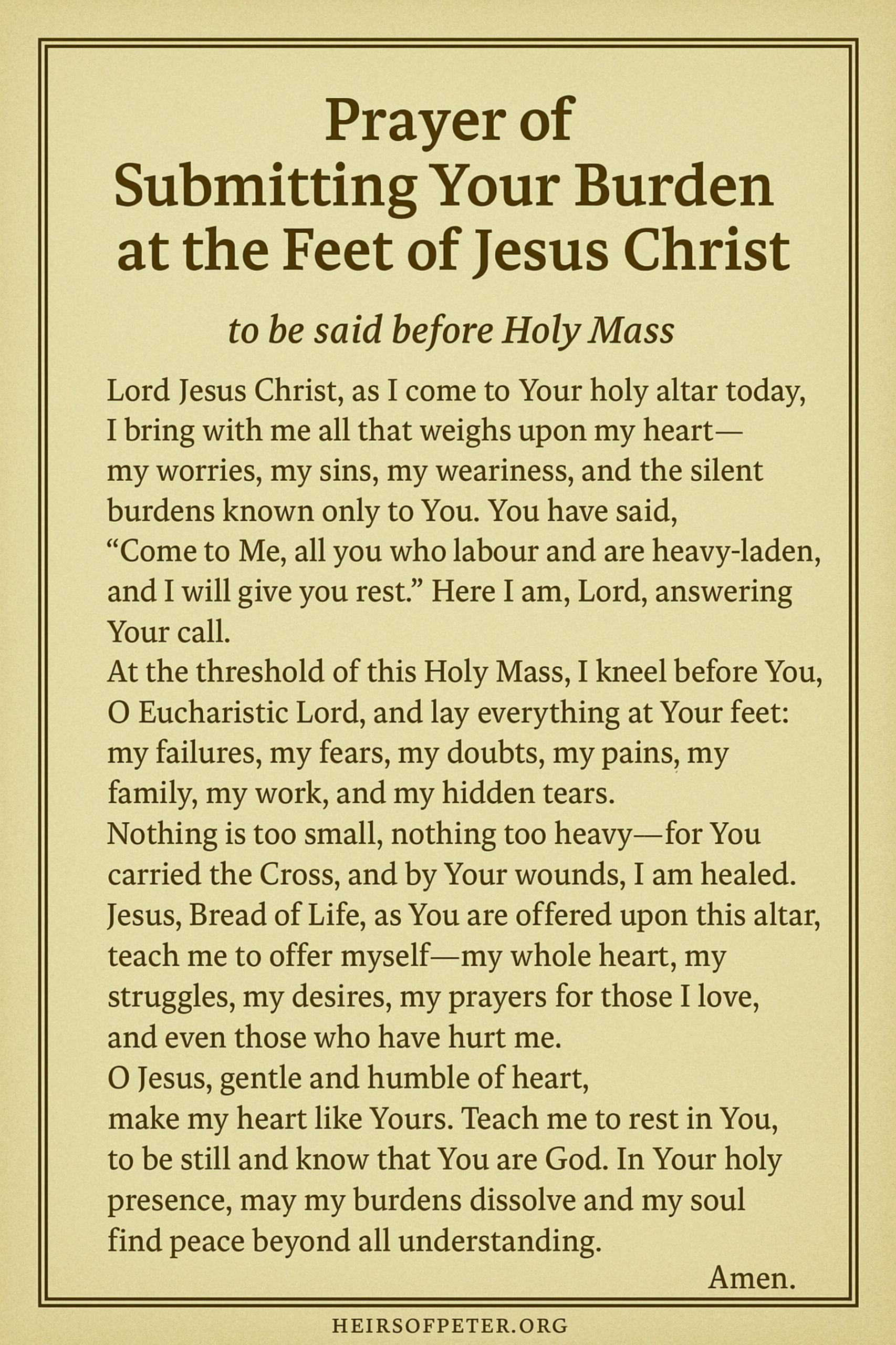 At this Mass, I unite my sorrows with Your sacrifice,